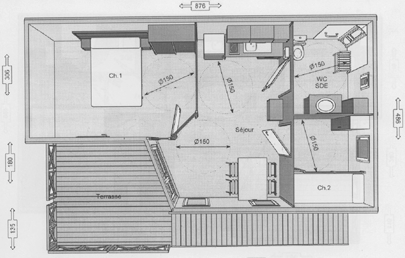 Holzchalet, barrierefrei gestaltet für Menschen mit eingeschränkter Mobilität, 35 m²