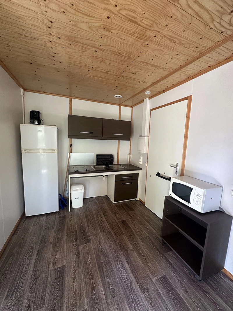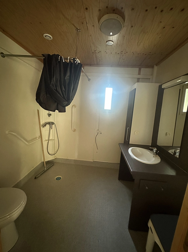 ist perfekt für Menschen mit Behinderung geeignet. Es verfügt über einen Parkplatz in der Nähe und eine Zugangsrampe, die den Einstieg erleichtert. Der Innenbereich ist geräumig, ermöglicht eine gute Manövrierbarkeit mit dem Rollstuhl und umfasst zwei barrierefreie Schlafzimmer. Darüber hinaus sind mehrere Aktivitäten und Zugänge des Campingplatzes so gestaltet, dass ein komfortabler und für alle zugänglicher Aufenthalt gewährleistet ist.
