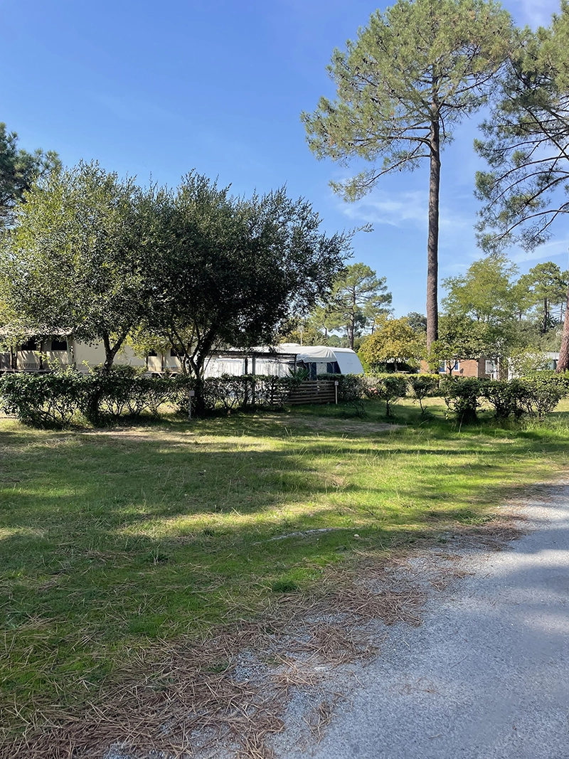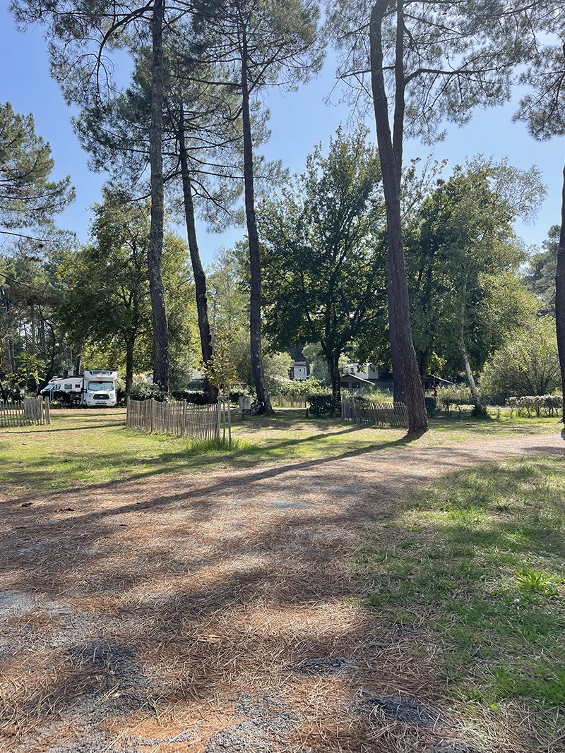 Unsere Stellplätze liegen inmitten eines Kiefernwaldes und sind durch Holzzäune oder Pflanzenbeete voneinander abgegrenzt. Einige liegen in der Sonne, andere im Schatten. Sie haben die Wahl!